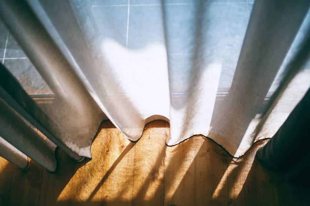 Kies je voor gordijnen in een kleine ruimte? Zorg dat ze van het plafond tot aan de vloer lopen. Dan heb je weer een verticale lijn in de ruimte, waardoor het hoger lijkt.