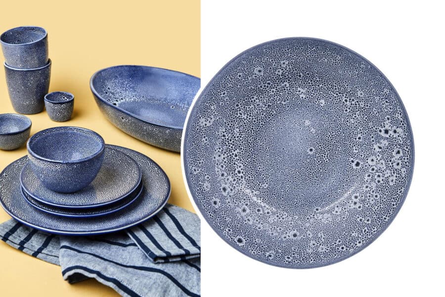 Het servies Porto is uitgevoerd in kleuren die aan de vakantie doen denken. De onvoorspelbare chemische reactie in de glazuurlaag zorgt voor verschillende kleurstellingen.