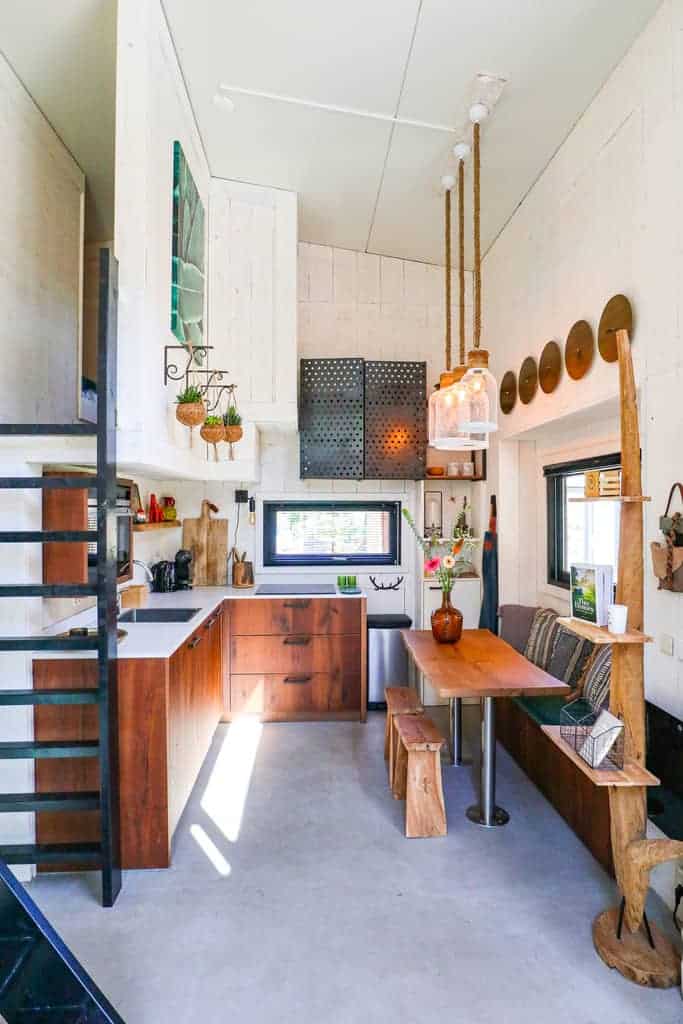 In 2018 keerden Ginny en Richard terug en besloten ze zich te vestigen in een tiny house. Ze leven kleiner, bewuster en duurzamer dan ooit, maar ervaren bovenal veel vrijheid: geen hoge woonlasten en beiden werken ze slechts twee tot drie dagen per week. Ginny: “Voor ons geldt: deze woonstijl is fantastisch! Ja, het is klein, maar daar hebben we heel bewust voor gekozen. Net zoals we met ons volle verstand hebben gekozen voor alleen koud water, een leven zonder koelkast en mét een composttoilet. Inmiddels zijn we heel wat maanden verder en nog altijd zijn we gelukkig. We kennen ook de andere kant: voordat we op reis gingen hadden we een koophuis en beiden een goede job. Maar ons nieuwe bestaan bevalt ons beter: we zijn meer dan ooit verbonden met de natuur en brengen veel meer tijd buiten door. Heerlijk!”