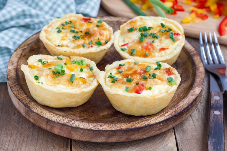 Feestje? Maak er mini’s van door de vormpjes van een muffinvorm te vullen. Staat enig op een mooi versierde tafel, waar je bezoek ze zelf vandaan snackt. In plaats van spekblokjes kun je ook variëren met zalm en spinazie. Erg lekker!