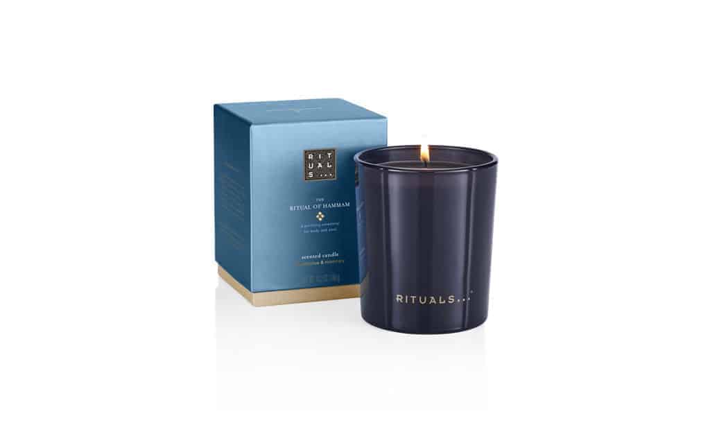 The Ritual of Hammam-collectie is geïnspireerd op een eeuwenoude traditie, met geuren zoals rozemarijn en eucalyptus. Deze geurkaars gaat tot wel vijftig branduren mee.
