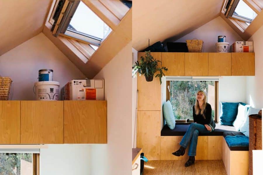 “Wanneer je eenmaal een mooie kavel hebt gevonden en je kleine huisje zo goed als klaar is om te bewonen, komen we bij het volgende aan: ontspullen. Wonen in een tiny house leert je al snel om te leven met minder, maar in het begin kan dat nog wel eens wennen zijn. Zelf had ik veel aan de tips van opruimgoeroe Marie Kondo. Zij werkt niet per ruimte, maar per categorie. Oftewel: eerst al je kleren opruimen, daarna weer een volgende stap. Uiteindelijk ben ik ontzettend blij met mijn minimalistische levensstijl. Het geeft mij veel meer overzicht en rust!”